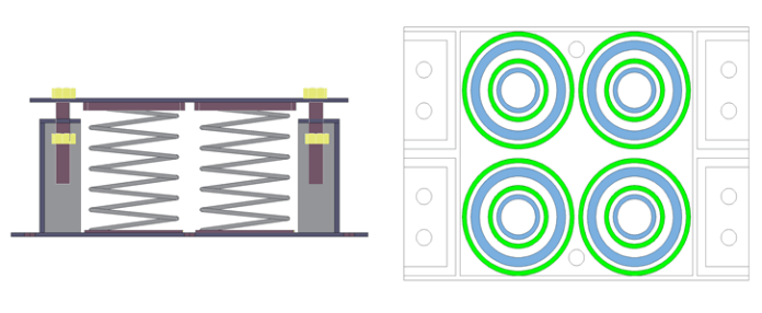 Zemine oturan mekanik ekipmanların titreşim izolasyonu ve sismik koruma için kullanılır.