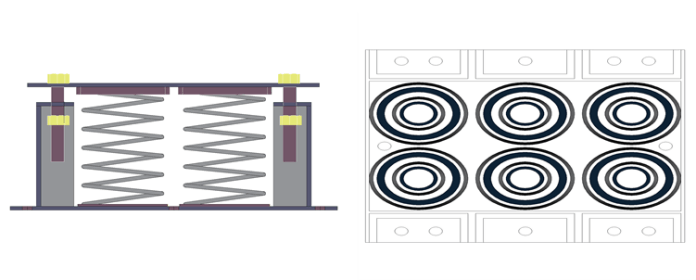 Zemine oturan mekanik ekipmanların titreşim izolasyonu ve sismik koruma için kullanılır.