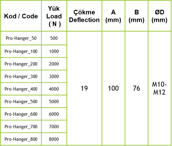 Asılı tip montaj yapılan mekanik / elektrik ekipmanların yanısıra asma tavan gibi yapısal olmayan elemanların titreşim izolasyonu için kullanılır.